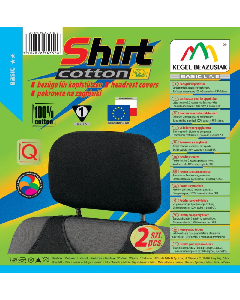 Natural cotton on the outside makes the covers very pleasant and body-friendly, and they do not generate static electricity. In addition, the cotton fabric is dyed using modern methods and dyes from reputable manufacturers, which makes it more resistant to colour loss due to sunlight and washing than other cotton products. The covers can be safely washed at 40° - in accordance with the instructions on the packaging. COTTON covers also have the necessary, appropriately sized openings, allowing them to be fitted without having to remove the headrests and make additional openings. The set comes with special plastic clips and fasteners sewn into the fabric, which, with the help of the included illustrated instructions, ensures very easy installation. A product from the BASIC LINE series, whose motto is – very good quality at an affordable price. Manufactured from high-quality raw materials. Covers from this brand meet all strength and quality standards. Their careful workmanship and high-quality materials make them ideal for the automotive industry.