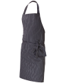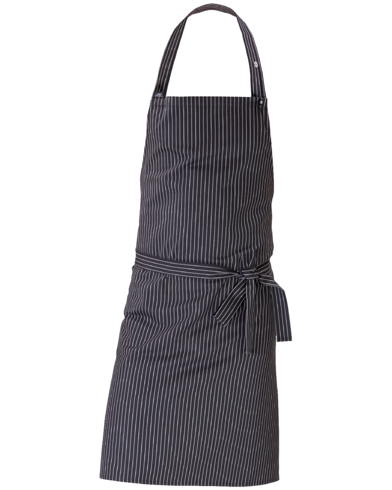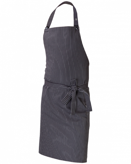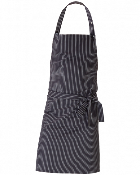 An elegant striped apron for chefs, butchers and anyone working in the catering and food sectors. The apron is put on over the head and can be adjusted at the neck and waist for a perfect fit.