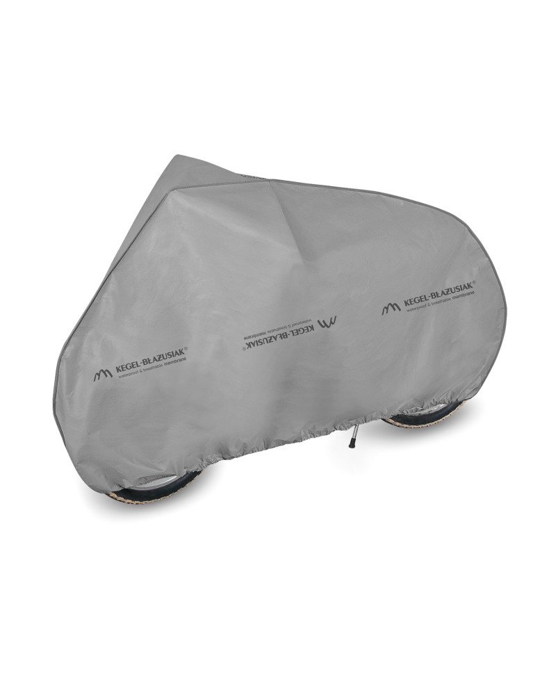 Membrane, waterproof and at the same time vapour permeable cover to protect your bike stored outdoors from adverse environmental influences. Weatherproof cover made entirely from a highly vapour-permeable membrane. Impermeable even in heavy rain and at the same time vapour permeable, it transports moisture away from under the cover. Reduces corrosion and ageing of plastic parts, protects against fading and tarnishing of paintwork and chrome parts. The cover is attached with an elastic puller which makes it easy to be put on and taken off the bike. Extra fasteners placed underneath prevent the cover from being ripped off by the wind. It is suitable for long or short-term storing of a bike without an electric drive. It can also be used indoors.