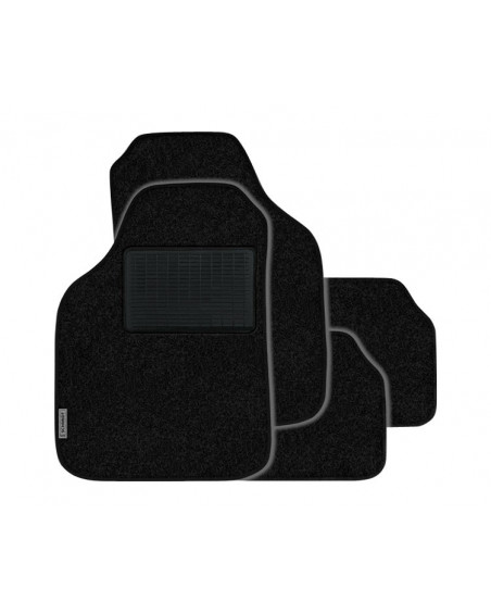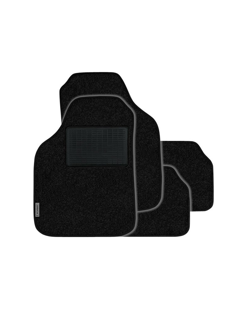 A set of practical THURINGEN car mats, professionally made from extremely durable and strong carpet with high abrasion resistance. The material has a unique pile structure that traps sand, dust and other debris falling from shoes. Liquids brought into the vehicle on shoes are absorbed into the material. The mats are extremely durable and strong, yet elegant and tasteful. They are very easy to clean and protect the car floor from having to be cleaned. The part of the mat under the driver's foot is reinforced with an additional layer of plastic, which traps larger debris. A layer of rubber laminate on the underside prevents the mat from slipping.