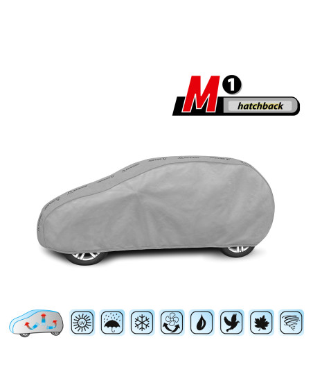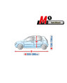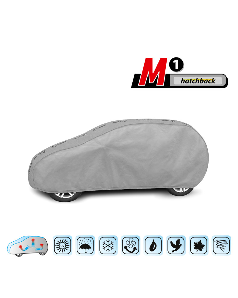 The textile material from which the car cover is made will fit both slightly smaller and larger cars of a similar shape and size not exceeding the circumference specified above.