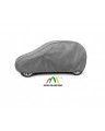 The unique properties of the multi-layer material ensure that the cover is waterproof, while allowing water vapor to escape from under the cover.  Any moisture that accumulates under the cover will quickly evaporate, preventing rust and mold from forming on the car. The cover is suitable for both temporary and long-term use. The cover can be hand washed at 40 degrees Celsius. The cover is gray, which is extremely practical and looks great. The center of the cover features the manufacturer's name and logo, as well as the name of the material from which it is made, guaranteeing the originality and high quality of the product. The variety of shapes and sizes means that you can choose a cover that fits your car perfectly.