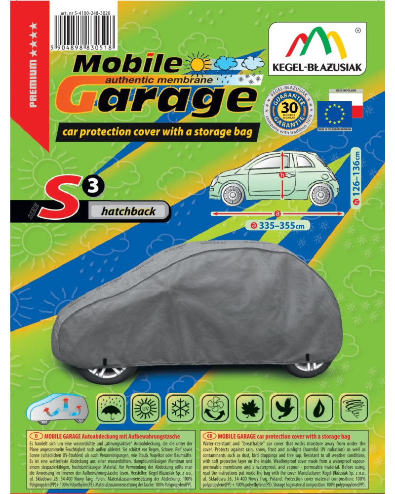 The high-quality Mobile Garage cover is a product tailored to the needs of drivers. The cover is made of a 4-layer material that is thick, strong, and durable. The cover protects the entire car from harmful environmental influences. The Mobile Garage cover provides adequate protection for your vehicle throughout the year. Its functionality can be appreciated in every season. In winter, it prevents snow, frost, and ice from settling on the car and is resistant to freezing; in autumn, it protects against rain, wind, leaves, and tree sap; and in summer and spring, it protects against UV rays, dust, and bird droppings.