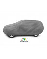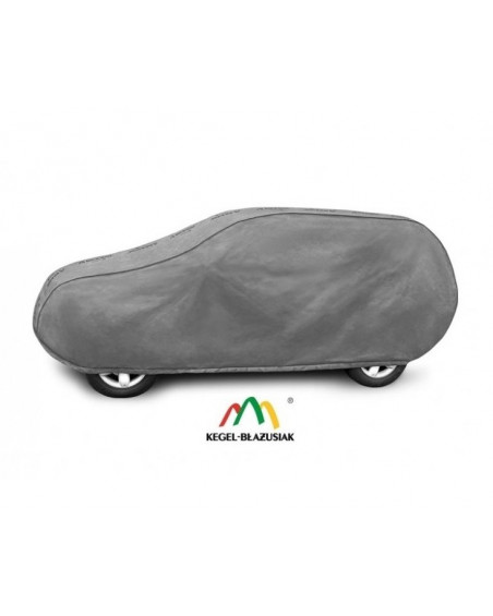 The unique properties of the multi-layer material ensure that the cover is waterproof, while allowing water vapor to escape from under the cover. Any moisture that accumulates under the cover will quickly evaporate, preventing rust and mold from forming on the car. The cover is suitable for both temporary and long-term use. The cover can be hand washed at 40 degrees Celsius. The cover is gray, which is extremely practical and looks great. The center of the cover features the manufacturer's name and logo, as well as the name of the material from which it is made, guaranteeing the originality and high quality of the product. The variety of shapes and sizes means that you can choose a cover that fits your car perfectly.