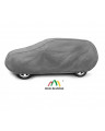 The unique properties of the multi-layer material ensure that the cover is waterproof, while allowing water vapor to escape from under the cover. Any moisture that accumulates under the cover will quickly evaporate, preventing rust and mold from forming on the car. The cover is suitable for both temporary and long-term use. The cover can be hand washed at 40 degrees Celsius. The cover is gray, which is extremely practical and looks great. The center of the cover features the manufacturer's name and logo, as well as the name of the material from which it is made, guaranteeing the originality and high quality of the product. The variety of shapes and sizes means that you can choose a cover that fits your car perfectly.
