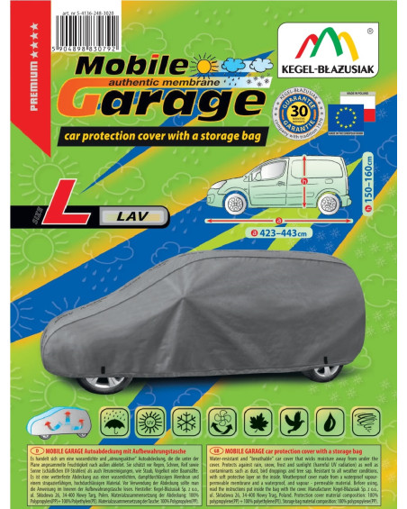 The high-quality Mobile Garage cover is a product tailored to the needs of drivers. The cover is made of a 4-layer material that is thick, strong, and durable. The cover protects the entire car from harmful environmental influences. The Mobile Garage cover provides adequate protection for your vehicle throughout the year. Its functionality can be appreciated in every season. In winter, it prevents snow, frost, and ice from settling on the car and is resistant to freezing; in autumn, it protects against rain, wind, leaves, and tree sap; and in summer and spring, it protects against UV rays, dust, and bird droppings.
