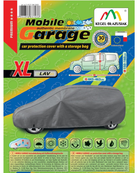 The high-quality Mobile Garage cover is a product tailored to the needs of drivers. The cover is made of a 4-layer material that is thick, strong, and durable. The cover protects the entire car from harmful environmental influences. The Mobile Garage cover provides adequate protection for your vehicle throughout the year. Its functionality can be appreciated in every season. In winter, it prevents snow, frost, and ice from settling on the car and is resistant to freezing; in autumn, it protects against rain, wind, leaves, and tree sap; and in summer and spring, it protects against UV rays, dust, and bird droppings.