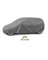 The unique properties of the multi-layer material ensure that the cover is waterproof, while allowing water vapor to escape from under the cover.  Any moisture that accumulates under the cover will quickly evaporate, preventing rust and mold from forming on the car. The cover is suitable for both temporary and long-term use. The cover can be hand washed at 40 degrees Celsius. The cover is gray, which is extremely practical and looks great. The center of the cover features the manufacturer's name and logo, as well as the name of the material from which it is made, guaranteeing the originality and high quality of the product. The variety of shapes and sizes means that you can choose a cover that fits your car perfectly.