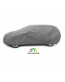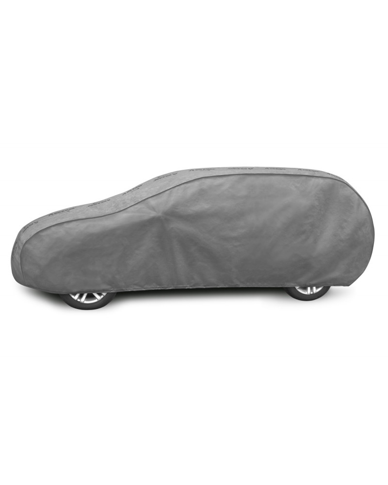 The unique properties of the multi-layer material ensure that the cover is waterproof, while allowing water vapor to escape from under the cover.  Any moisture that accumulates under the cover will quickly evaporate, preventing rust and mold from forming on the car. The cover is suitable for both temporary and long-term use. The cover can be hand washed at 40 degrees Celsius. The cover is gray, which is extremely practical and looks great. The center of the cover features the manufacturer's name and logo, as well as the name of the material from which it is made, guaranteeing the originality and high quality of the product. The variety of shapes and sizes means that you can choose a cover that fits your car perfectly.