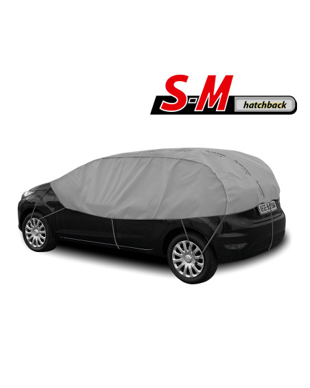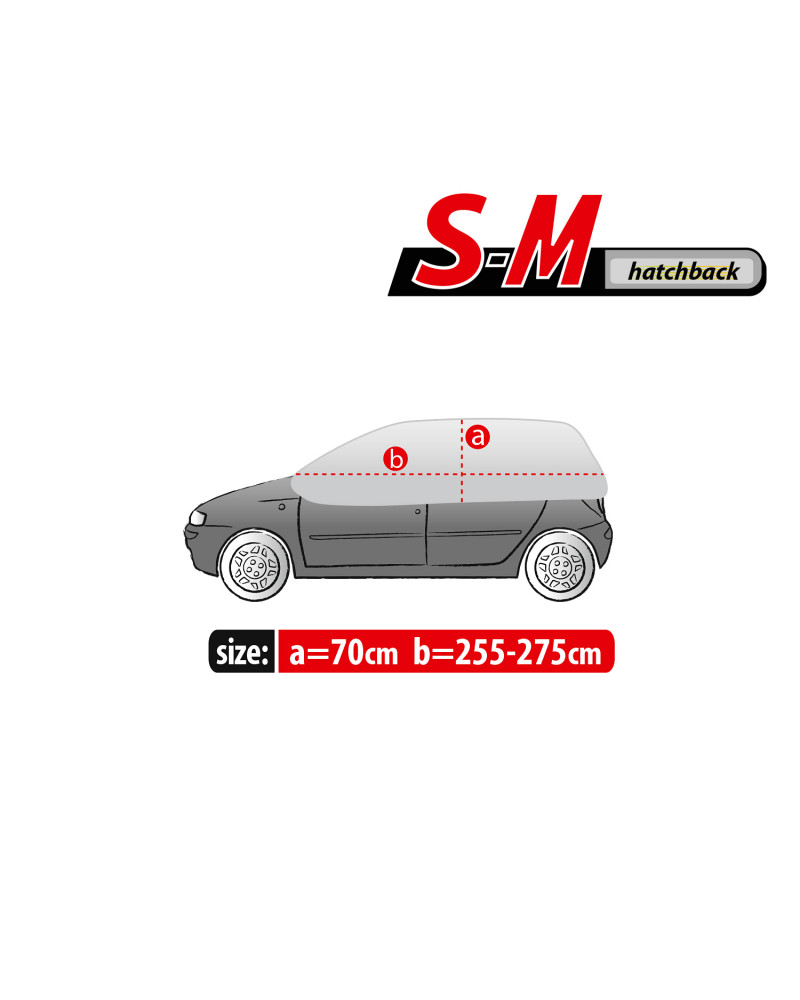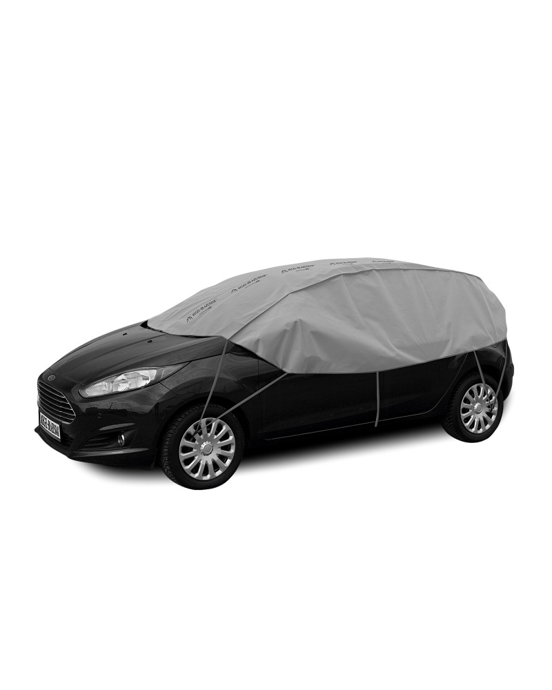 The high-quality material is durable and strong. The covers are grey, which is extremely practical and looks great at the same time. The product is suitable for both temporary and long-term use. Designed for car owners who do not have the possibility of garaging their cars and leave them outside for longer periods of time. The product is very easy and quick to install. Simply hook the elastic loops of the cover, which are finished with secure hooks, onto the rims, the lower edge in the middle of the car and the lower edge of the rear bumper (installation instructions below). The cover stays firmly attached to the car and does not move even in gusty winds. When folded, the cover does not take up much space, so you can always carry it with you.