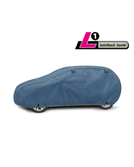 The unique properties of the multi-layer material ensure that the cover does not get wet, while allowing water vapour to escape from under the cover. Any moisture that accumulates under the cover will quickly evaporate, preventing rust and mould from forming on the car. The cover is suitable for both temporary and long-term use. The cover can be hand washed at 40 degrees. The cover is navy blue, which is extremely practical and looks great. The centre of the cover features the manufacturer's name and logo, as well as the name of the material from which it is made, guaranteeing the originality and high quality of the product. The variety of shapes and sizes means that you can choose a cover that fits your car perfectly.