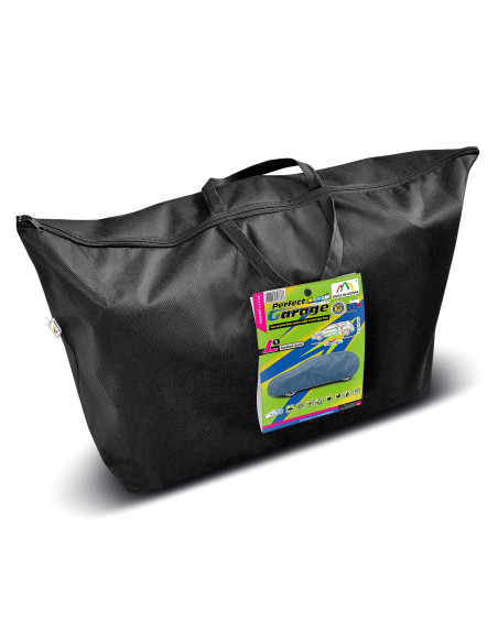 The textile material from which the tarpaulin is made will fit both slightly smaller and larger cars of a similar shape and size not exceeding the circumference specified above.