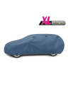The unique properties of the multi-layer material ensure that the cover does not get wet, while allowing water vapour to escape from under the cover. Any moisture that accumulates under the cover will quickly evaporate, preventing rust and mould from forming on the car. The cover is suitable for both temporary and long-term use. The cover can be hand washed at 40 degrees. The cover is navy blue, which is extremely practical and looks great. The centre of the cover features the manufacturer's name and logo, as well as the name of the material from which it is made, guaranteeing the originality and high quality of the product. The variety of shapes and sizes means that you can choose a cover that fits your car perfectly.