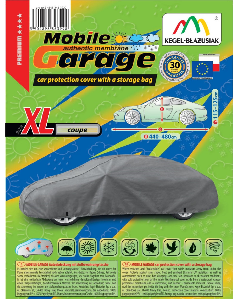 The high-quality Mobile Garage cover is a product tailored to the needs of drivers. The cover is made of a 4-layer material that is thick, strong, and durable. The cover protects the entire car from harmful environmental influences. The Mobile Garage cover provides adequate protection for your vehicle throughout the year. Its functionality can be appreciated in every season. In winter, it prevents snow, frost, and ice from settling on the car and is resistant to freezing; in autumn, it protects against rain, wind, leaves, and tree sap; and in summer and spring, it protects against UV rays, dust, and bird droppings.