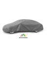 The unique properties of the multi-layer material ensure that the cover is waterproof, while allowing water vapor to escape from under the cover.  Any moisture that accumulates under the cover will quickly evaporate, preventing rust and mold from forming on the car. The cover is suitable for both temporary and long-term use. The cover can be hand washed at 40 degrees Celsius. The cover is gray, which is extremely practical and looks great. The center of the cover features the manufacturer's name and logo, as well as the name of the material from which it is made, guaranteeing the originality and high quality of the product. The variety of shapes and sizes means that you can choose a cover that fits your car perfectly.