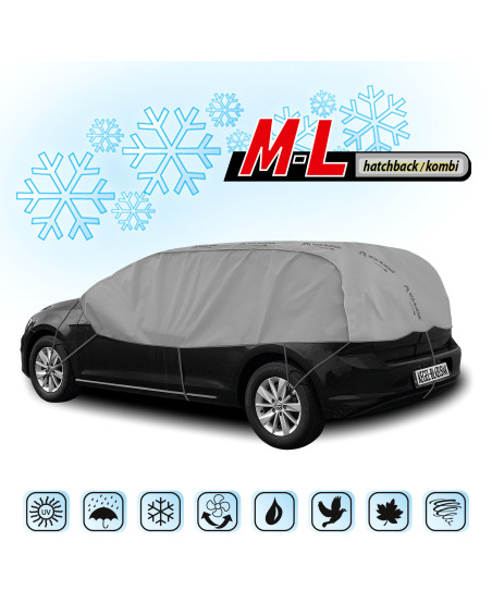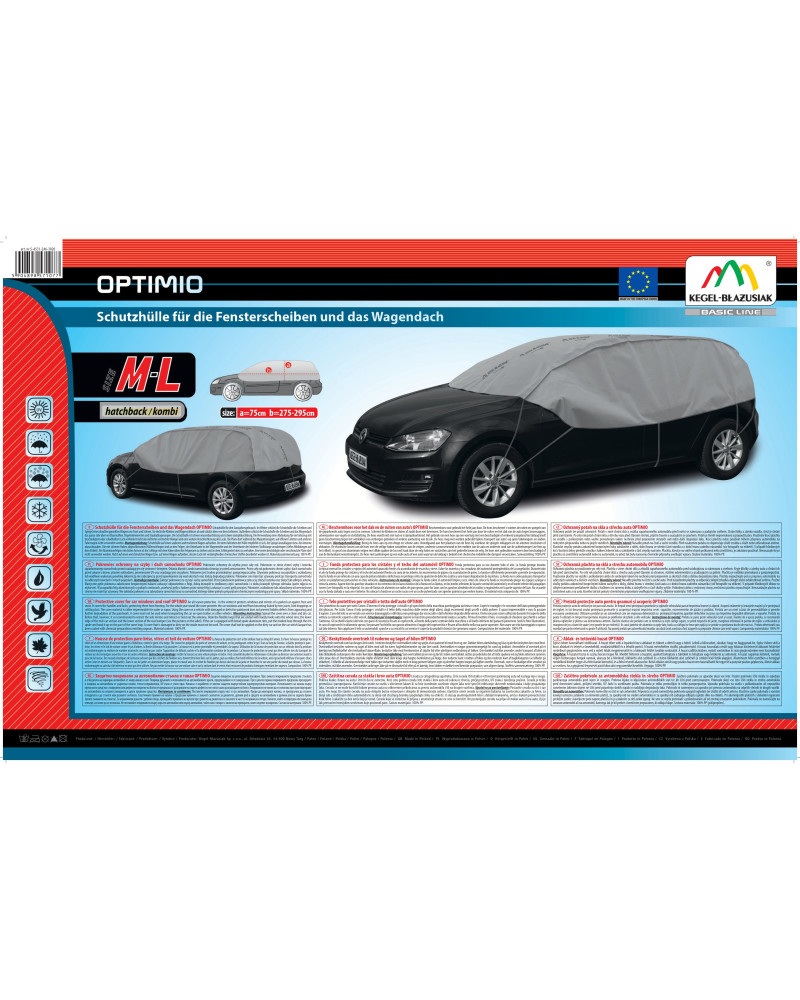 OPTIMIO protective half-covers will protect the roof, windows and mirrors of your parked car from frost and snow in winter. They cover the car door handles and locks, preventing them from freezing. They do not freeze to the car. They also protect against tree sap, bird droppings, dust deposits and even UV rays. Therefore, they can be used at any time of the year.