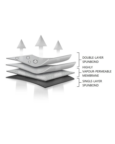 The sides of the cover are double-layered, made of two layers of SPUNBOND non-woven fabric. The sides of the cover are highly vapour-permeable and highly water-resistant.