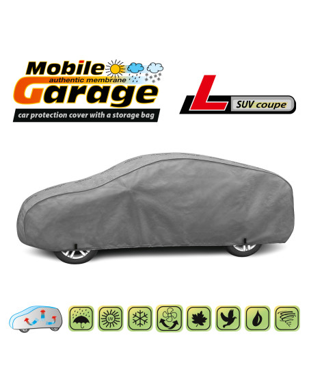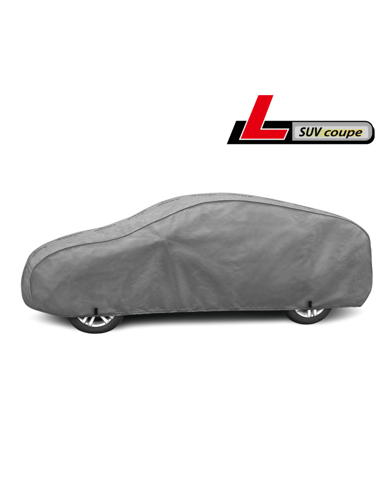 The unique properties of the multi-layer material ensure that the cover is waterproof, while allowing water vapor to escape from under the cover.  Any moisture that accumulates under the cover will quickly evaporate, preventing rust and mold from forming on the car. The cover is suitable for both temporary and long-term use. The cover can be hand washed at 40 degrees Celsius. The cover is gray, which is extremely practical and looks great. The center of the cover features the manufacturer's name and logo, as well as the name of the material from which it is made, guaranteeing the originality and high quality of the product. The variety of shapes and sizes means that you can choose a cover that fits your car perfectly.
