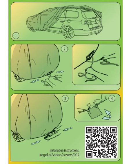 The cover is intended for use on a parked car, therefore it cannot be used when transporting the car on open tow trucks or other vehicles. Using the cover on a vehicle with a damaged, worn or defective paint finish does not protect against the appearance of hidden defects and further degradation of the paint finish. A cover that is damaged or dirty on the inside must not be used.