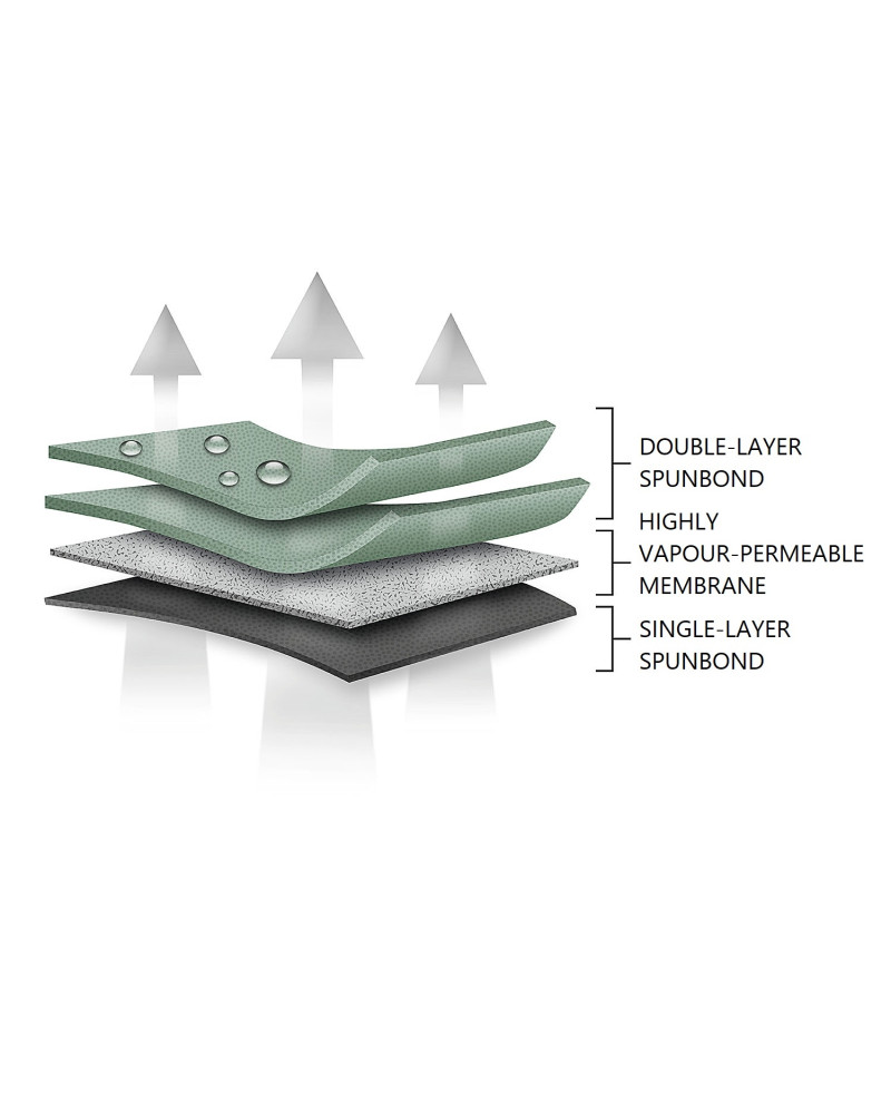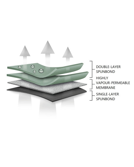 • waterproof even during heavy rain and at the same time vapour-permeable, wicking moisture away from under the cover