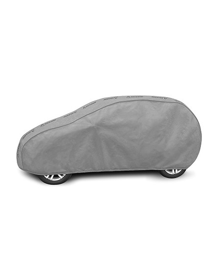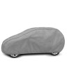 The unique properties of the multi-layer material ensure that the cover does not get wet, while allowing water vapour to escape from under the cover. Any moisture that accumulates under the cover will quickly evaporate, preventing rust and mould from forming on the car. The cover is suitable for both temporary and long-term use. The cover can be hand washed at 40 degrees. The cover is grey in colour, which is extremely practical and looks great. The centre of the cover features the manufacturer's name and logo, as well as the name of the material from which it is made, guaranteeing the originality and high quality of the product. The variety of shapes and sizes means that you can choose a cover that fits your car perfectly.