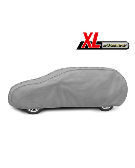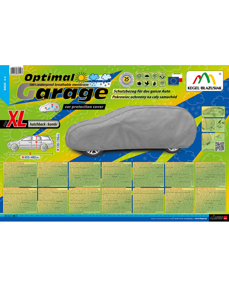 The unique properties of the multi-layer material ensure that the cover does not get wet, while allowing water vapour to escape from under the cover. Any moisture that accumulates under the cover will quickly evaporate, preventing rust and mould from forming on the car. The cover is suitable for both temporary and long-term use. The cover can be hand washed at 40 degrees. The cover is grey in colour, which is extremely practical and looks great. The centre of the cover features the manufacturer's name and logo, as well as the name of the material from which it is made, guaranteeing the originality and high quality of the product. The variety of shapes and sizes means that you can choose a cover that fits your car perfectly.