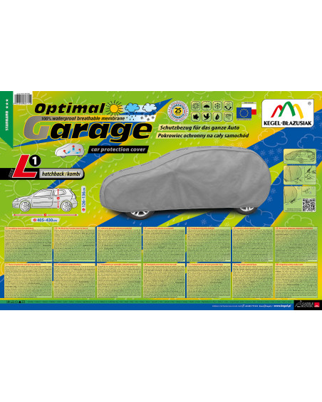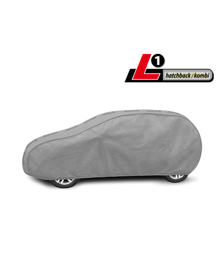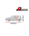 The unique properties of the multi-layer material ensure that the cover does not get wet, while allowing water vapour to escape from under the cover. Any moisture that accumulates under the cover will quickly evaporate, preventing rust and mould from forming on the car. The cover is suitable for both temporary and long-term use. The cover can be hand washed at 40 degrees. The cover is grey in colour, which is extremely practical and looks great. The centre of the cover features the manufacturer's name and logo, as well as the name of the material from which it is made, guaranteeing the originality and high quality of the product. The variety of shapes and sizes means that you can choose a cover that fits your car perfectly.