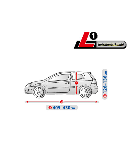 - Fits vehicles with dimensions: length 406-430 cm, circumference 1156 cm