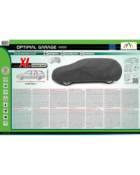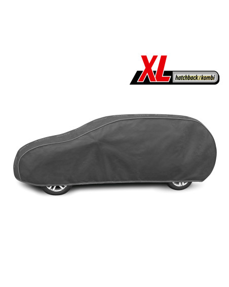 The unique properties of the multi-layer material ensure that the cover does not get wet, while allowing water vapour to escape from under the cover. Any moisture that accumulates under the cover will quickly evaporate, preventing rust and mould from forming on the car. The cover is suitable for both temporary and long-term use. The cover can be hand washed at 40 degrees. The cover is grey in colour, which is extremely practical and looks great. The centre of the cover features the manufacturer's name and logo, as well as the name of the material from which it is made, guaranteeing the originality and high quality of the product. The variety of shapes and sizes means that you can choose a cover that fits your car perfectly.