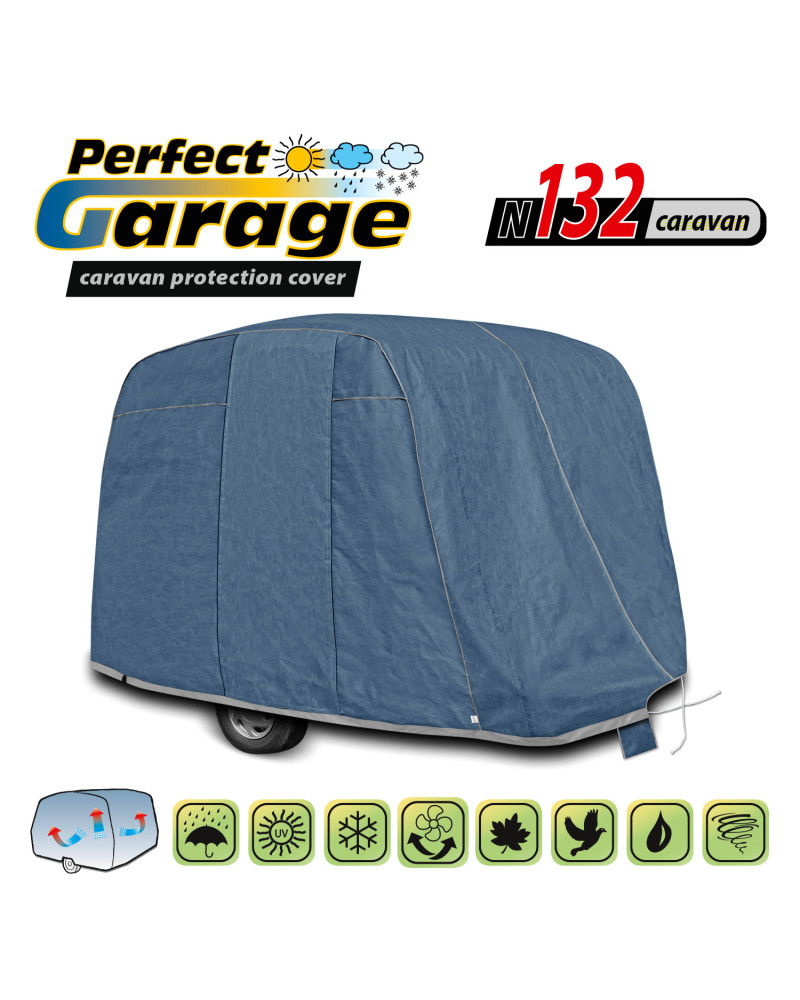 The high-quality Membrane Garage cover is a product tailored to the needs of drivers. The cover is made of 4-layer material, which is thick, strong and durable. The cover protects the entire caravan from harmful environmental influences. The Membrane Garage cover provides adequate protection for your vehicle throughout the year. Its functionality can be appreciated in every season. In winter, it prevents snow, frost and ice from settling and is resistant to freezing; in autumn, it protects against rain, wind, leaves and tree sap; and in summer and spring, it protects against UV rays, dust and bird droppings.