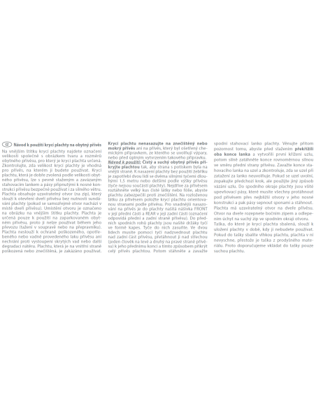 The bag in which the cover is packed is used to store the cover when not in use. The bag is vapour-permeable; however, the folded cover may not dry out, so it is recommended that the cover is kept dry.