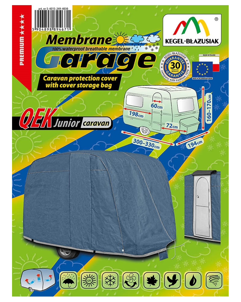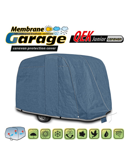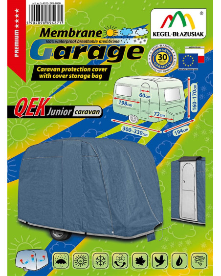 The high-quality Membrane Garage cover is a product tailored to the needs of drivers. The cover is made of 4-layer material, which is thick, strong and durable. The cover protects the entire caravan from harmful environmental influences. The Membrane Garage cover provides adequate protection for your vehicle throughout the year. Its functionality can be appreciated in every season. In winter, it prevents snow, frost and ice from settling and is resistant to freezing; in autumn, it protects against rain, wind, leaves and tree sap; and in summer and spring, it protects against UV rays, dust and bird droppings.
