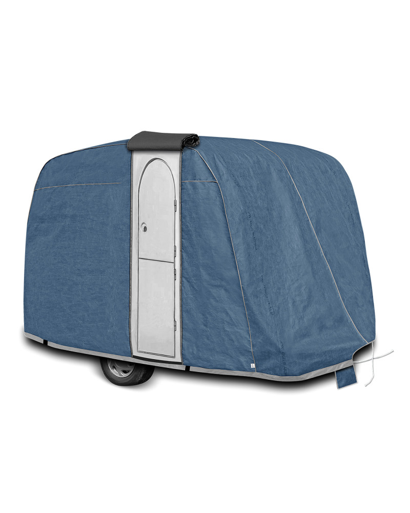 - covers the entire caravan, slightly overlapping underneath;