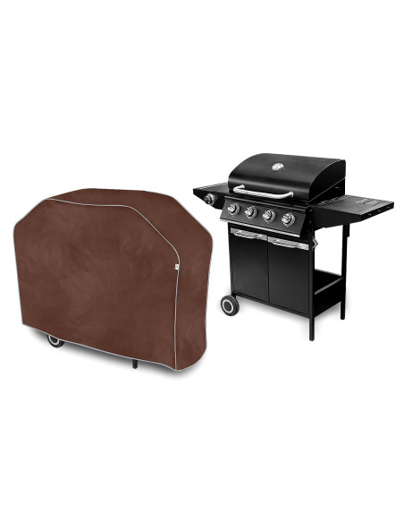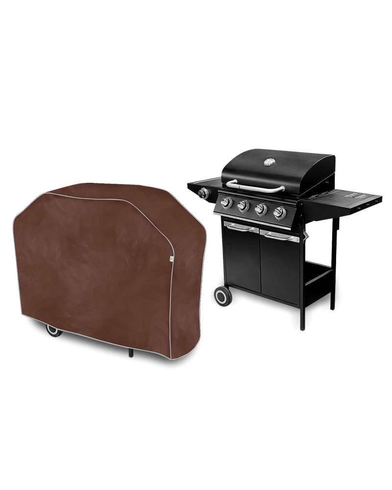 Waterproof cover for protecting a charcoal or gas outdoor barbecue from adverse environmental influences. Also suitable for indoor use. Protects your outdoor barbecue from rain, snow, frost and sun rays (harmful UV) as well as contaminants such as dust, bird droppings and tree sap. Waterproof cover fully weatherproof for use all year round.