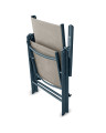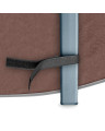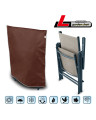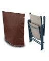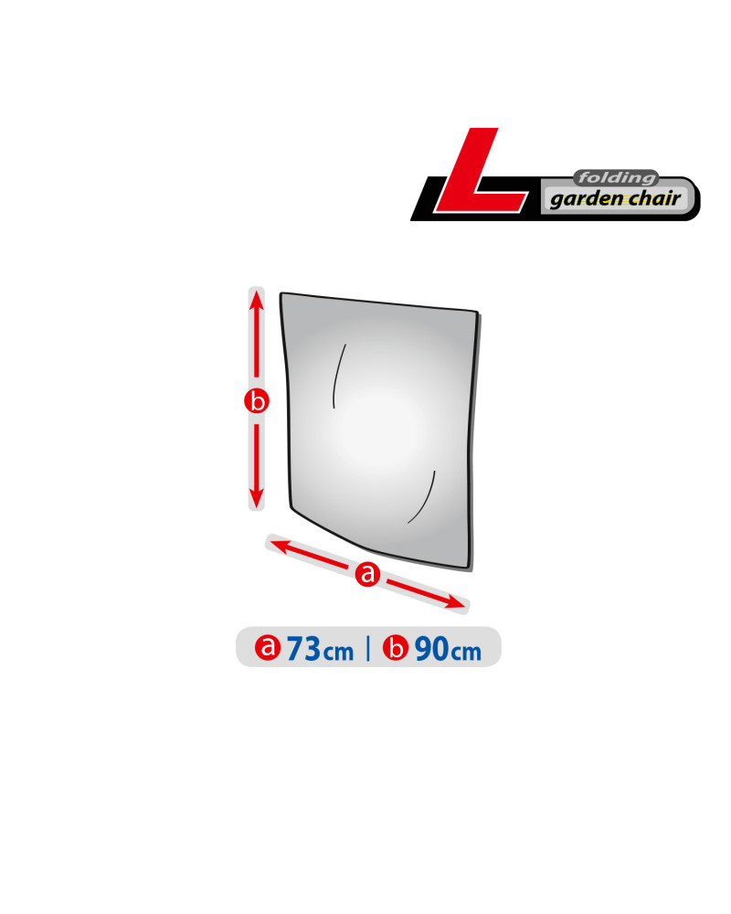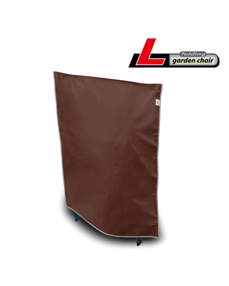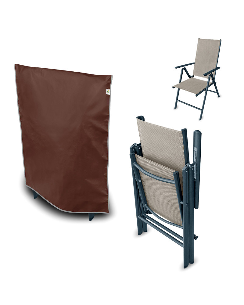 A year-round cover for protecting a folding garden chair stored outdoors from adverse environmental effects. The cover is designed to be used on one folding chair. Thanks to a special construction, water flows down the cover when it rains, without penetrating underneath, and vapour is carried away to the outside. It protects the chair from rain, snow, frost and the sunlight (harmful UV) as well as contaminants such as dust, bird droppings and tree sap. It reduces corrosion and ageing of plastic or wooden parts, protects against fading and tarnishing of lacquer and chrome parts. The cover is fully resistant to all weather conditions. Easy to put on and take off. Additional fastenings prevent the cover from being torn off by the wind. Also suitable for indoor use.