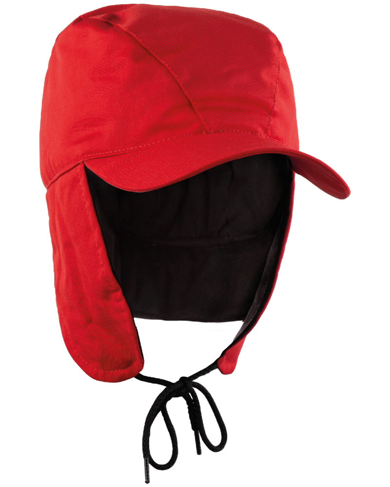 Warm Hat with earflaps, red 0109/WORK