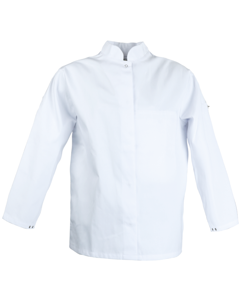 The long white HACCP women's blouse from the Food & Gastro collection is versatile and perfect for the food, catering, medical, industrial and other sectors. With its simple cut, practical inside pocket and fasteners inside the sleeves, this elongated jacket is perfect for women working in various food-related sectors. The garment is durable and resistant to all kinds of damage, dirt and stains. Thanks to the use of unique and durable Klopman fabric, we guarantee the colour fastness of the blouse even after repeated washing.