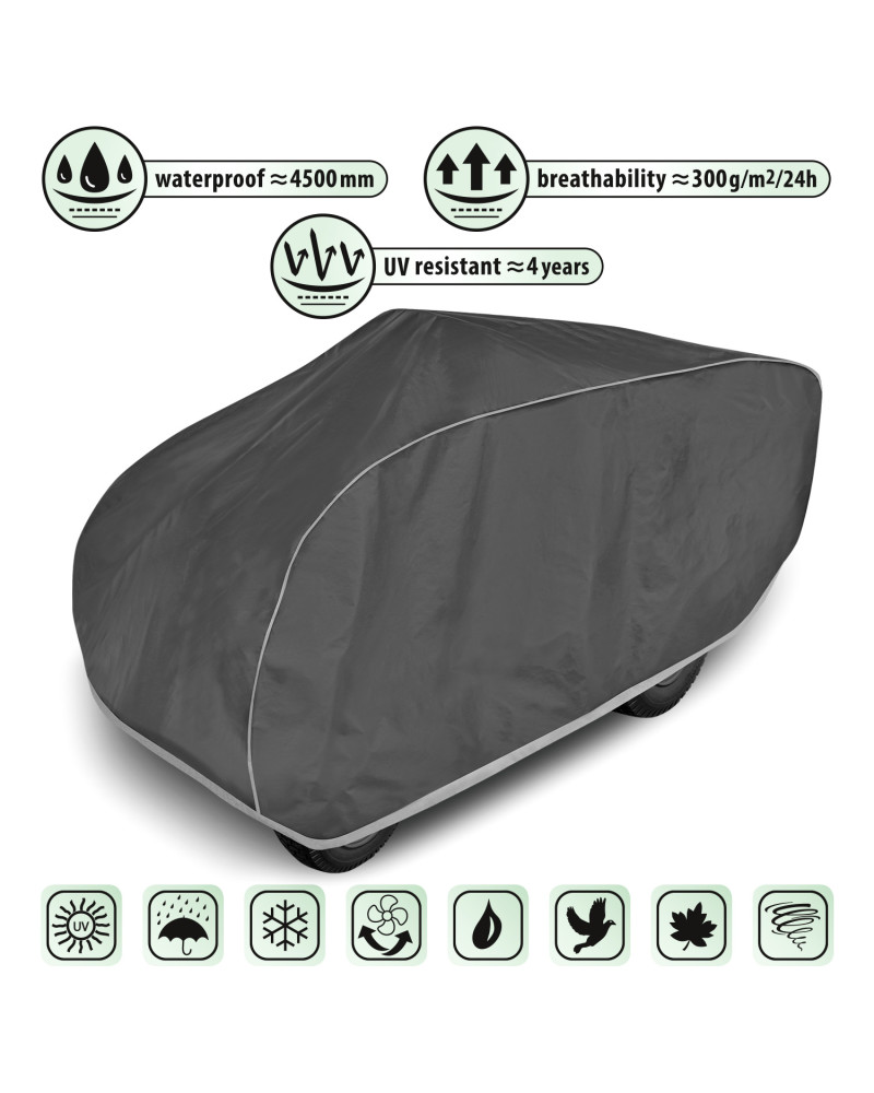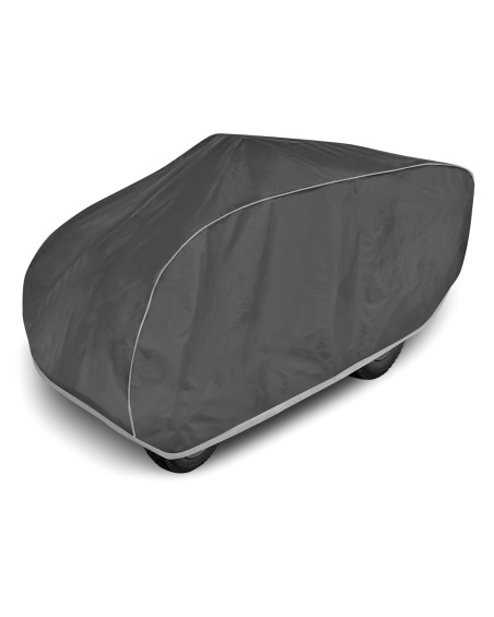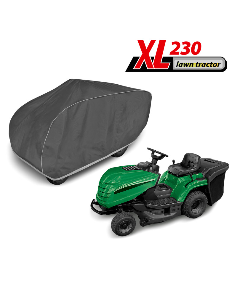 Membrane, waterproof and at the same time vapour-permeable cover to protect your petrol lawn tractor stored outdoors from adverse environmental effects. Weatherproof cover made entirely of a highly vapour-permeable membrane. Impermeable even in heavy rain and at the same time vapour-permeable, wicking away moisture from under the cover. The cover protects the tractor from rain, snow, frost and sunlight (harmful UV rays) as well as contaminants such as dust, bird droppings and tree sap. It reduces corrosion and ageing of plastic parts, protects against fading and tarnishing of paintwork and chrome parts.