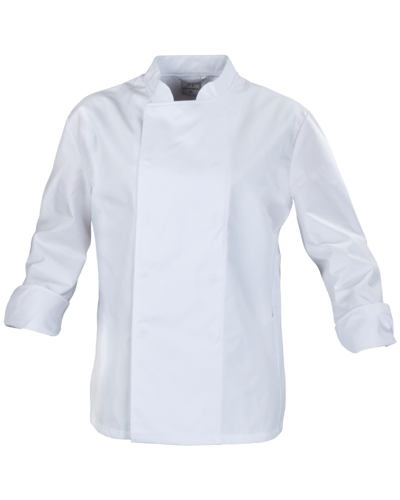 The jacket has shaping cuts on the sides that emphasise the chef's silhouette perfectly, as well as contrasting fabric cuffs and a double-breasted fastening that makes it quicker to put on and take off in case of contact with hot food or cooking equipment.