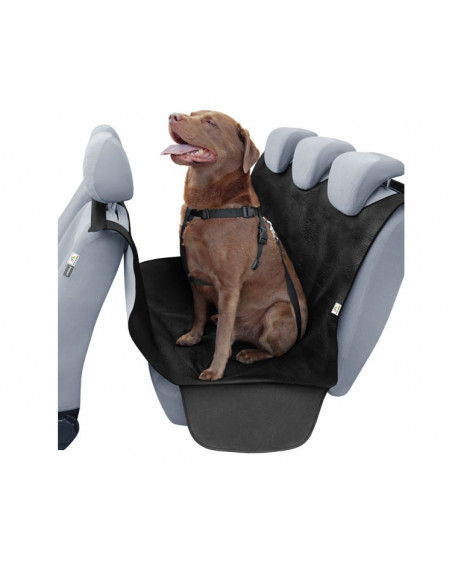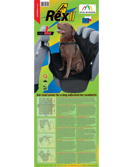 The REX II car mat for dogs is an extremely practical product designed for transporting dogs or luggage on the rear seat of a car. It has holes that allow you to attach your dog to the seat belt with a car leash. In addition, it creates a kind of hammock between the back seat and the front seats. This allows you to transport your dog safely, protecting it from sudden braking and other shocks caused by driving. It protects the car's upholstery from mud, dirt, hair and various types of scratches caused by transporting a dog or various unusual items on the back seat. Thanks to its large surface area and additional sewn-in side "wings", it covers the entire rear seat, including its sides, which are also vulnerable to damage, mainly when the dog gets into the car. The material from which the cover is made is waterproof and does not allow unpleasant odours to pass through.