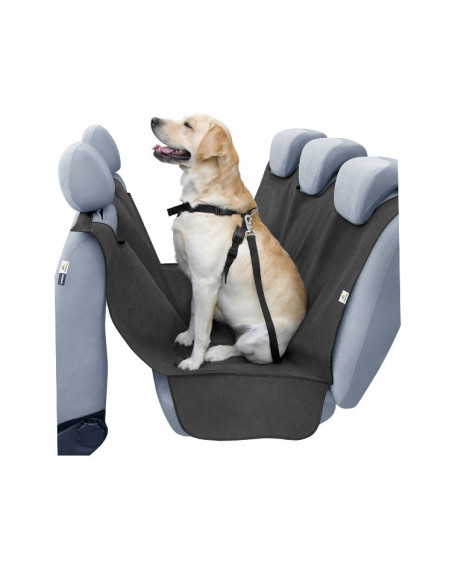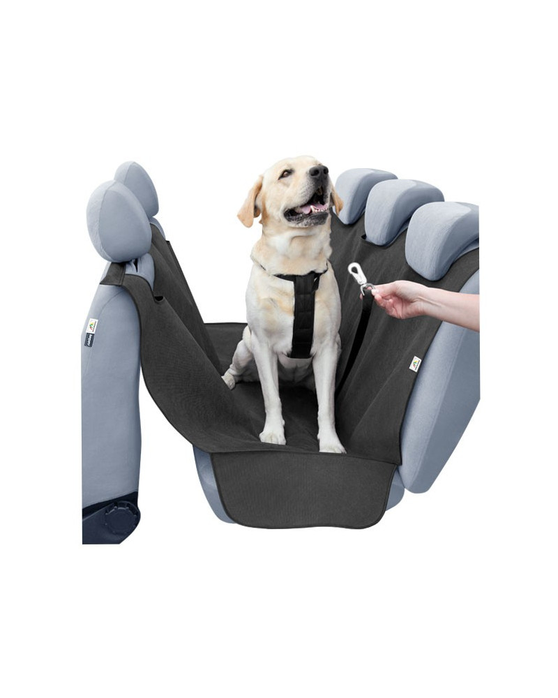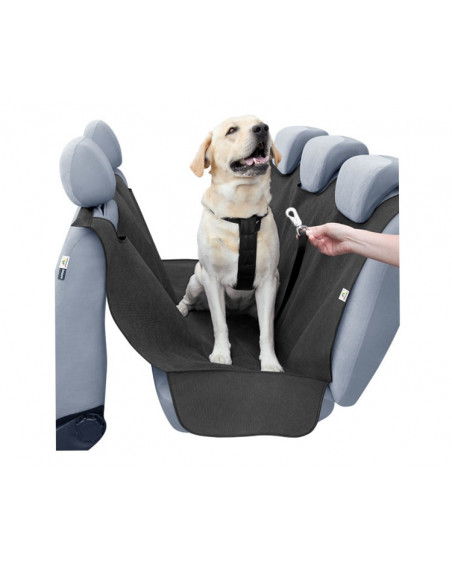 - Hard-wearing material, does not absorb odours. - Safety and comfort for your pet - Special openings for attaching your dog to the seat belt with a car leash - Comfortable to use - Protects the upholstery - Protection of the entire rear seat, including the sides