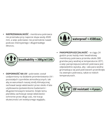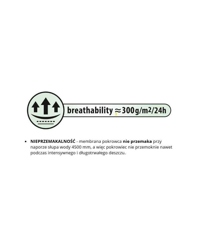 waterproof even during heavy rain and at the same time vapour-permeable, wicking moisture away from under the cover