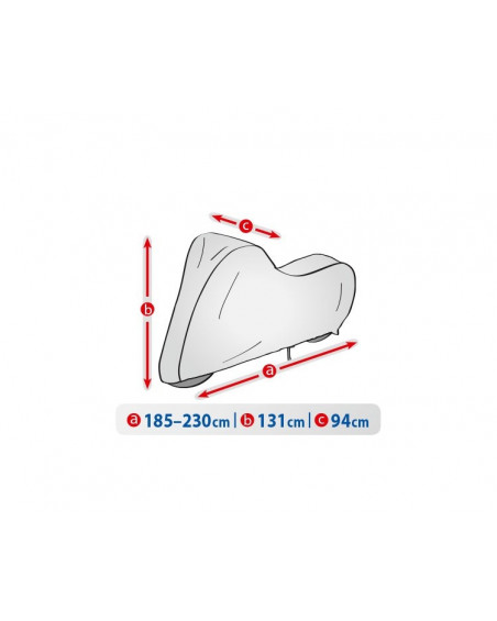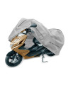 A membrane-based, waterproof and at the same time vapour-permeable cover to protect your combustion or electric scooter from adverse environmental influences. Weatherproof cover made entirely of a highly vapour-permeable membrane. Waterproof even in heavy rain and at the same time vapour-permeable, wicking away moisture from under the cover. Protects against rain, snow, frost and sunlight (harmful UV) as well as contaminants such as dust, bird droppings and tree sap. Reduces corrosion and ageing of plastic parts, protects against fading and tarnishing of paintwork and chrome parts. Suitable for long or short-term outdoor storage of a combustion scooter or short-term storage of an electric scooter. Also suitable for indoor use. A drawstring and additional fasteners underneath the scooter protect the cover from being ripped off by the wind. Holes in the cover allow the scooter to be attached by the front wheel with the cover using a lock or chain.