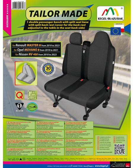 TAILOR MADE covers are made of high-quality upholstery fabric (both front and back), which, combined with careful attention to even the smallest details, will satisfy the most demanding customers. Thanks to their appropriate, spacious design and specific fit to your car, the covers fit the seats perfectly. The fabric adheres perfectly to the seats, replacing their original upholstery. Laminating the entire fabric on the inside with flame-retardant PUR foam prevents them from slipping.
