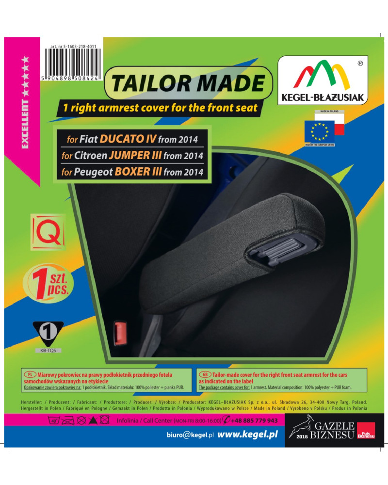 - Equipped with a special Velcro fastening, allowing the armrest to be pulled out of the driver's seat cover on both the right and left sides (English version)