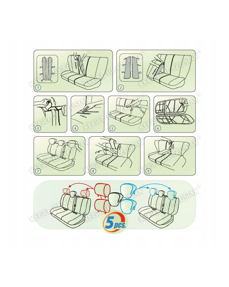 • Place the headrest covers on the seat headrests.