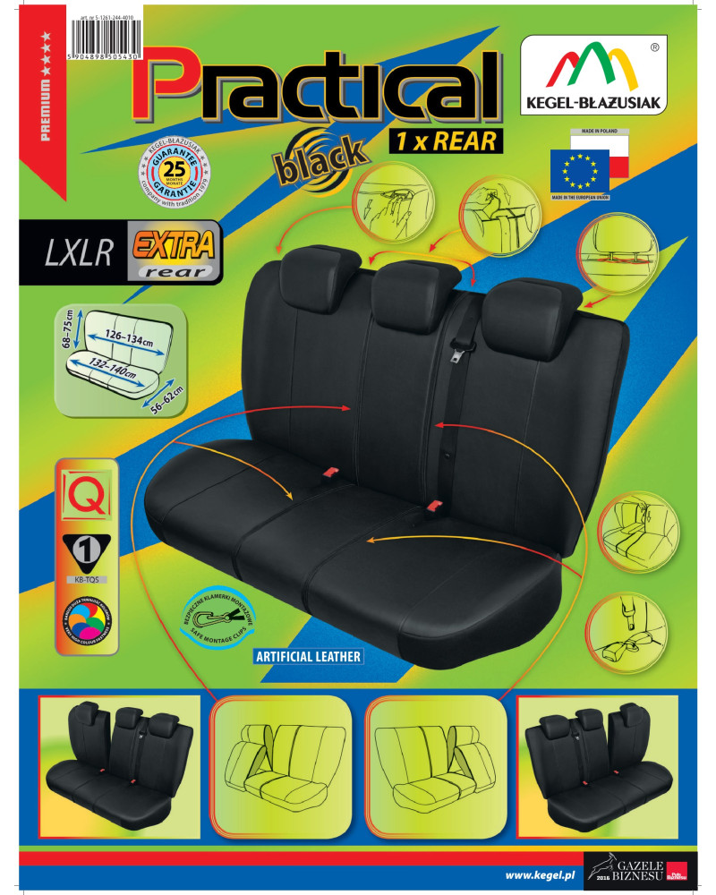 PRACTICAL custom-made seat covers are made of extremely durable, new-generation eco-leather, which, combined with meticulous attention to even the smallest details, will satisfy even the most demanding customers. When fitted correctly, the covers are virtually indistinguishable from the original leather seat upholstery, and this effect can be achieved at a really low price. The cover is made of strong and durable material, and thanks to its design, it fits the seat well and adheres to it, preventing the cover from slipping. PRACTICAL car covers protect the original car upholstery very well against wear and tear, and their tasteful, modern design creates a positive aesthetic impression. The cover is very easy to install and clean. Its solid workmanship guarantees high quality and long service life.