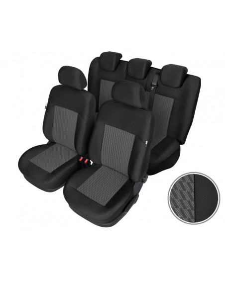 PERUN well-fitted covers are extremely elegant car seat covers designed by professionals from the highest quality materials. The highly durable, strong, flame-retardant upholstery fabric from the USA and Poland, additionally laminated on the inside with foam, ensures good adhesion of the covers and fits well to the seats, replacing their original upholstery. The fabric used to make the covers is very durable and resistant, and above all, flame-retardant. This type of material is often used by car manufacturers to produce "high-end" seat covers. The pleasant texture of high-quality velour fabric, preserved in a classic graphite colour scheme with a delicate beige pattern, suits the interior of almost any car. Functionality goes hand in hand with great looks. The elegant look combined with extremely professional workmanship will delight everyone. The PERUN seat covers will satisfy even the most sophisticated tastes of very demanding customers. They will add style and elegance to the interior of your car and protect the upholstery from all kinds of dirt and most types of damage. When you buy our seat covers, you can be sure that you are getting a top-class product that you will be able to use for years to come.