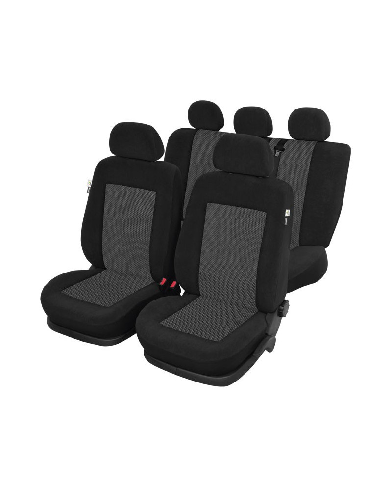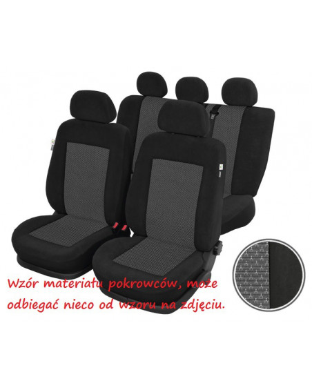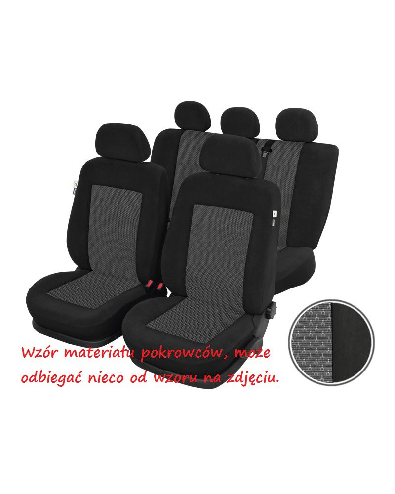 Covers in a classic two-colour design (black with a graphite-coloured patterned centre) – suitable for anyone who wants to make the interior of their car elegant and aesthetically pleasing. Kronos car covers are made of high-quality velour fabric – resistant to abrasion and tearing, they look great in the interior of the vehicle. They protect the car upholstery from dirt and damage. When you buy our covers, you can be sure that you will receive a high-quality product that you will be able to use for years.