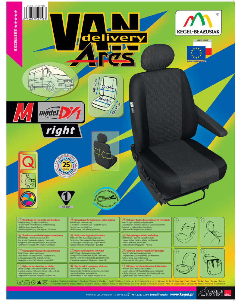 The well-fitting ARES covers are made of high-quality jacquard fabric, which, combined with the careful finishing of even the smallest details, will satisfy the most demanding customers. Thanks to their design, the covers fit the seats well, and the flame-retardant PUR foam laminated on the inside of the entire material prevents them from slipping. The offer is aimed at car owners who want to take care of the interior of their vehicles and add style and elegance. ARES car covers provide excellent protection for the original car upholstery against wear and tear, and their tasteful, classic design creates a positive aesthetic impression. The subdued colour scheme – black with a delicate grey texture – will fit perfectly into the interior of any car. Thanks to their appropriate, spacious design, the covers fit the seats well. The material adheres perfectly to the seats, replacing their original upholstery. These are the exact materials used to make the original seat covers for new vehicles for car factories. The advantage of ARES covers is that they cover the entire rear surface of the backrest. This feature makes them look very good from the back of the seat, while protecting it from dirt and damage (this is especially important for people with small children). Professional workmanship and high-quality materials guarantee a long service life.